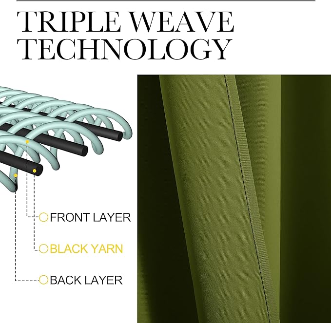 - SERVE WELL: Curtains impede 85%-99% light and UV rays(Dark color curtains work well). Noise-reducing, better TV viewing thanks to the innovative triple weave technology.