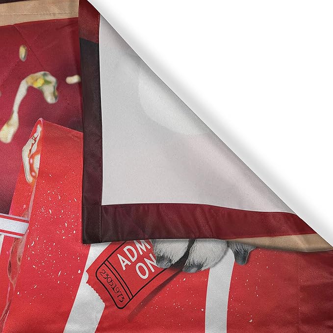 Ambesonne Pug Kitchen Curtains, Funny Dog Watching Movie Popcorn Soft Drink and Glasses Animal Photograph, Window Drapes 2 Panel Set for Kitchen Cafe Decor, 55" x 39", Cream Ruby