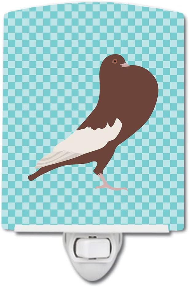 Caroline's Treasures BB8128CNL English Pouter Pigeon Blue Check Ceramic Night Light Compact, UL-Certified, Ideal for Bedroom, Bathroom, Nursery, Hallway, Kitchen, 6x4x3, Multicolor