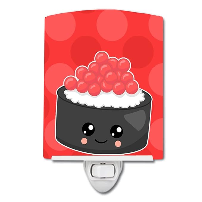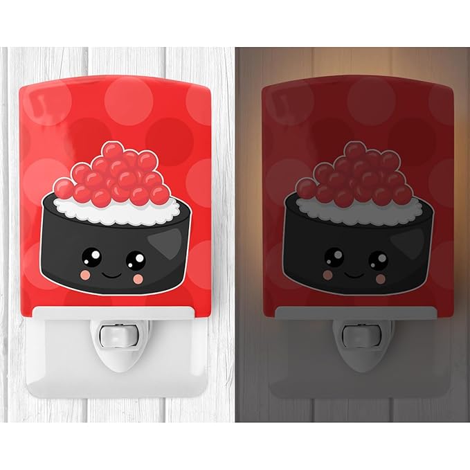 Caroline's Treasures BB8803CNL Salmon Sushi Roll with Face Ceramic Night Light Compact, UL-Certified, Ideal for Bedroom, Bathroom, Nursery, Hallway, Kitchen, 6x4x3, Multicolor