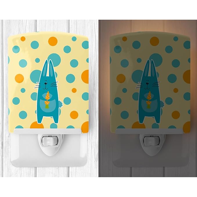 Caroline's Treasures BB6757CNL Polkadot Rabbit Ceramic Night Light Compact, UL-Certified, Ideal for Bedroom, Bathroom, Nursery, Hallway, Kitchen, 6x4x3, Multicolor