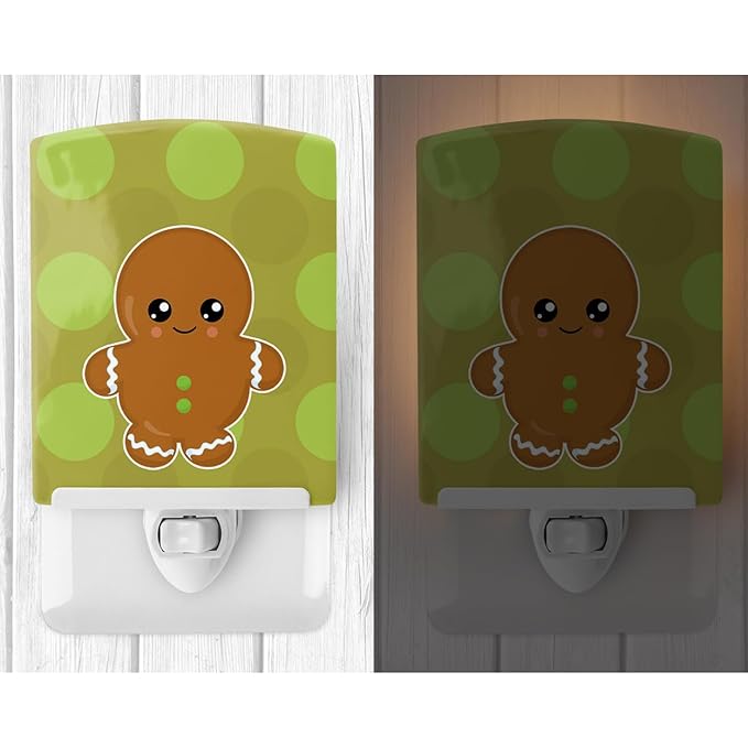 Caroline's Treasures BB6816CNL Christmas Gingerbread Man Ceramic Night Light Compact, UL-Certified, Ideal for Bedroom, Bathroom, Nursery, Hallway, Kitchen, 6x4x3, Multicolor