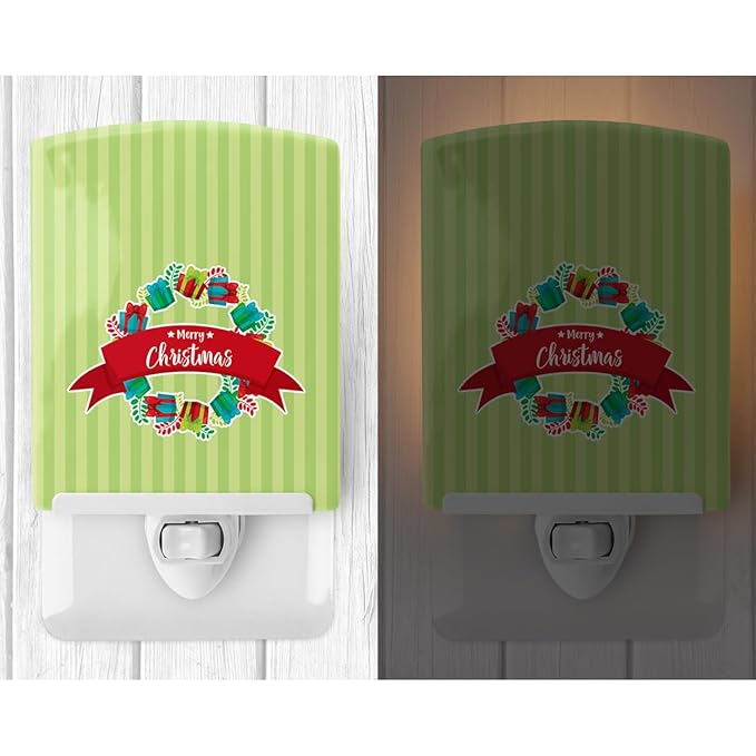 Caroline's Treasures BB6977CNL Christmas Wreath Presents Green Ceramic Night Light Compact, UL-Certified, Ideal for Bedroom, Bathroom, Nursery, Hallway, Kitchen, 6x4x3, Multicolor