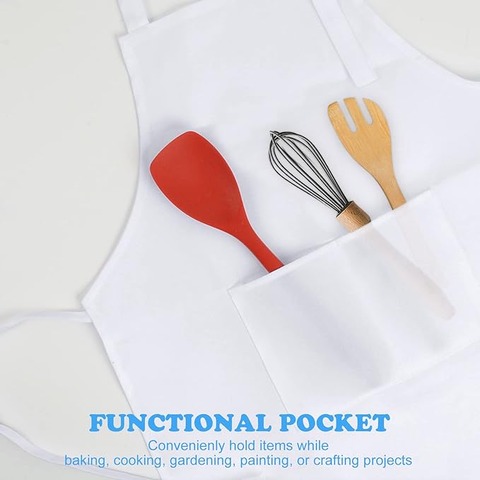 - Functional Kids Apron : Our aprons feature an adjustable neck strap and a quick tie in the back to fit kids of all ages, sizes and shapes.The 2 front pockets is convenient for kids to hold cooking baking,craft, painting tools