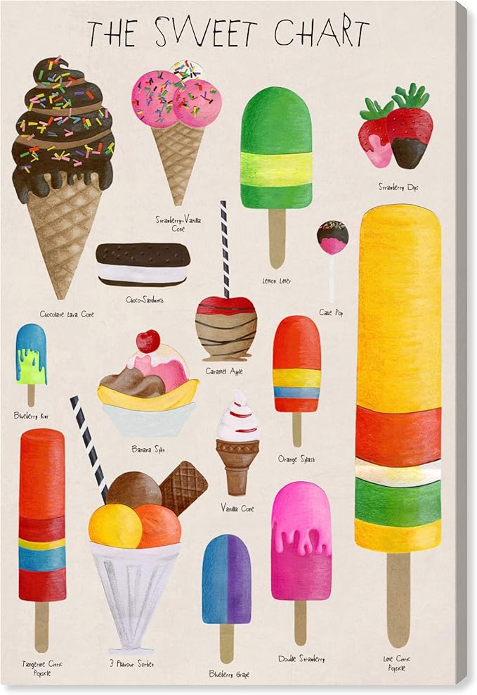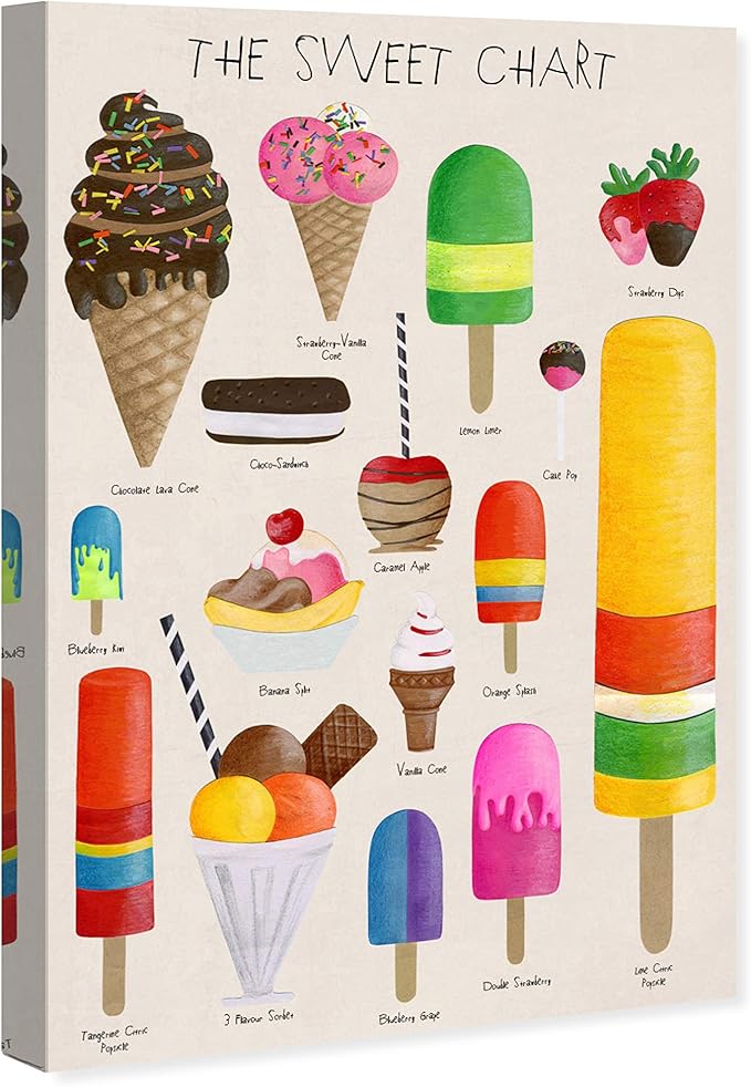 The Oliver Gal Artist Co. Kitchen Food Wall Art Canvas Prints for Kids Room 'The Sweet Chart' Childrens Bedroom Décor, 20" x 30", White, Red