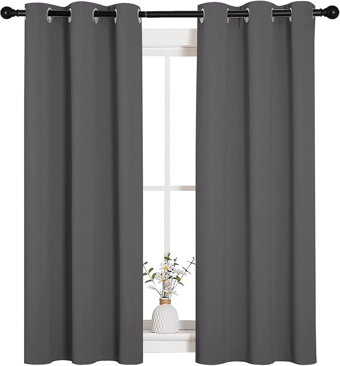 NICETOWN Bedroom Curtains Blackout Drapery Panels, Three Pass Microfiber Thermal Insulated Solid Ring Top Blackout Window Curtains/Drapes (Two Panels, 34 x 54 inches, Gray)