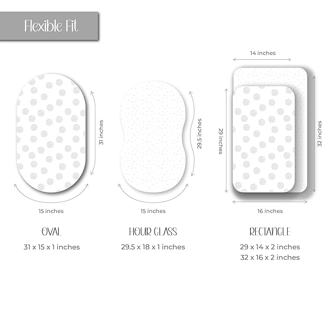 - This convenient two-pack features a modern and playful grey polka dot design paired with a grey dotted circle set on white, combed jersey knit cotton. You can be rest assured that your baby’s sleep surface will always be covered with a clean, trendy, and soft cotton sheet with this bassinet sheet set!