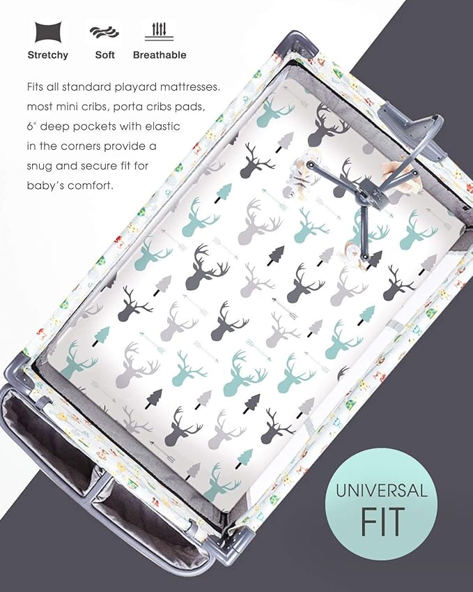 - Apple It Within Seconds: Thanks to the elastic bottom, our pack n play sheets come in a classic, cute bear and deer print that will put the finishing touches to any bedding. Make sure to give your darling a serene and calm bed to rest in.