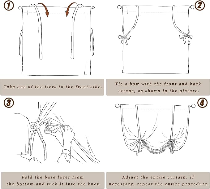 - STANDARD SIZE: Sold one panel in package, window tie up shade measuring 42" Width by 63" Length(Height), top rod pocket.