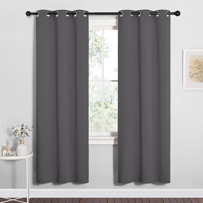 NICETOWN Grey Blackout Curtain Panels for Bedroom, Thermal Insulated Grommet Top Blackout Draperies and Drapes for Basement (2 Panels, W34 x L72-inch, Grey)