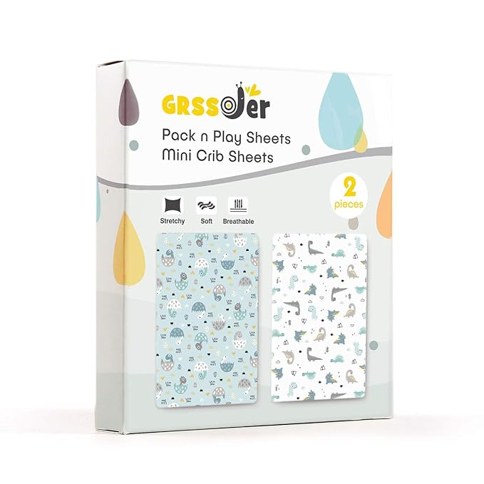 - Ultra Soft & 4-way Stretch: Made of extra soft stretchy jersey knit fabric. GRSSDER mini crib sheets offer a breathable, sweat-absorbent tee shirt like feel for exceptional comfort, providing your little ones a safe and to stay in place throughout the day.