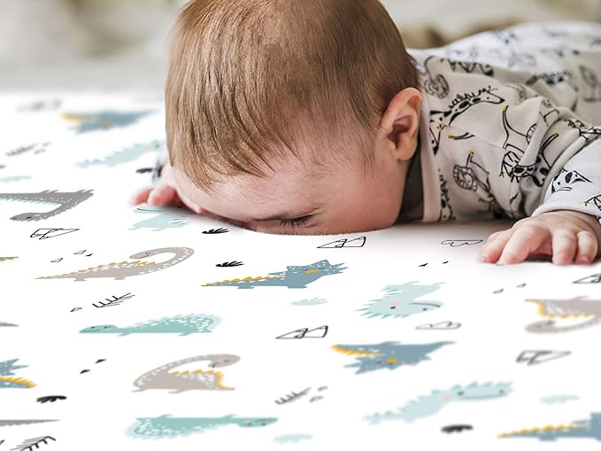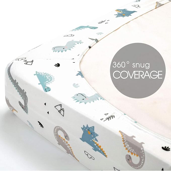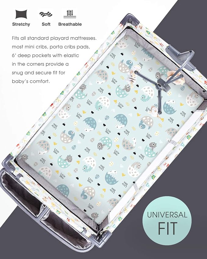 - Apple It Within Seconds: Thanks to the elastic bottom, our pack n play sheets come in a classic, cute dinosaurs and dinosaur eggs pattern that will put the finishing touches to any bedding. Make sure to give your darling a serene and calm bed to rest in.