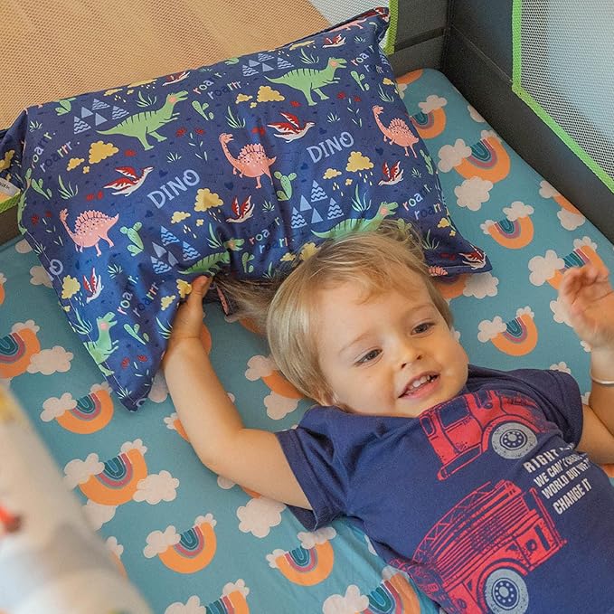 - Adorable and stylish design with vibrant color, adds fun and vitality to the toddler bed set. 2 pcs replacement baby pillowcases will keep the pillow clean and comfy.