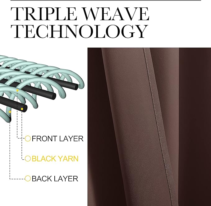 - UNIQUE DESIGN: Draperies constructed with 2 layers are all triple weave blackout fabric, balancing room temperature by insulating against summer HEAT and winter CHILL meanwhile protect PRIVACY. No chemical coating, no formaldehyde, ECO-friendly, bring harmonious to your family.