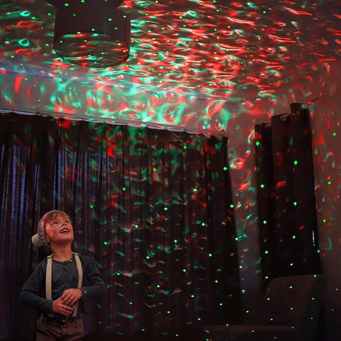 - 🎼【Soothing White Noise Sound Machine】: 8 built-in nature sounds: white noise, ocean wave, summer night, thunder, brook, fire charcoal, rain, wind, which creates a peaceful sleeping atmosphere. This ocean wave projector is very suitable for kids bedroom, game room, and home party.