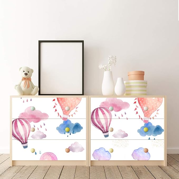 Removable 15.8 x 98.4inch Rainbow 3D Hot Air Ballon and Clouds Wall Decals DIY Wallpaper Wall Stickers Murals Decor for Kids Babys Girls Bedroom Teens Nursery Living Room Door Desk Decoration (Ballon)