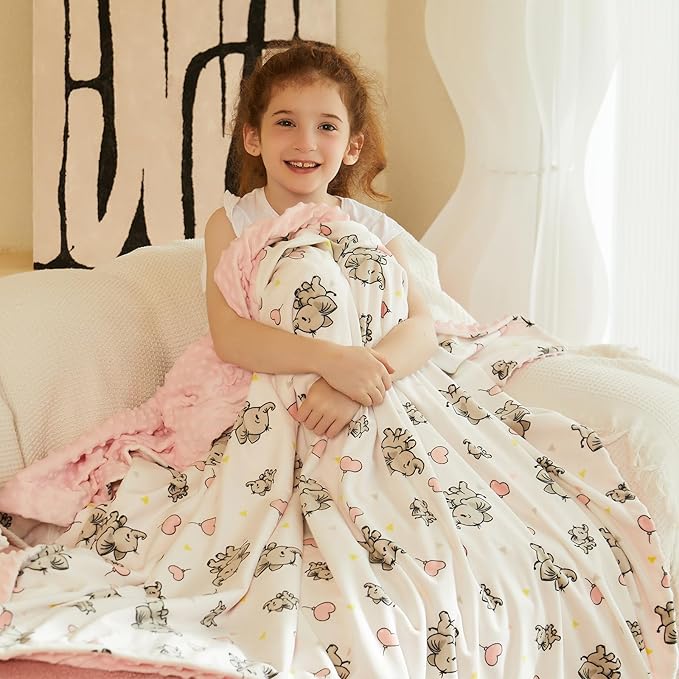 DaysU Silky Micro Soft Plush Baby Blankets for Girls with Print Animal Pattern and Soothing Raised Dots, Double Layer Bed Throws for Toddler Cot, Elephant, Pink, 50x60 Inches