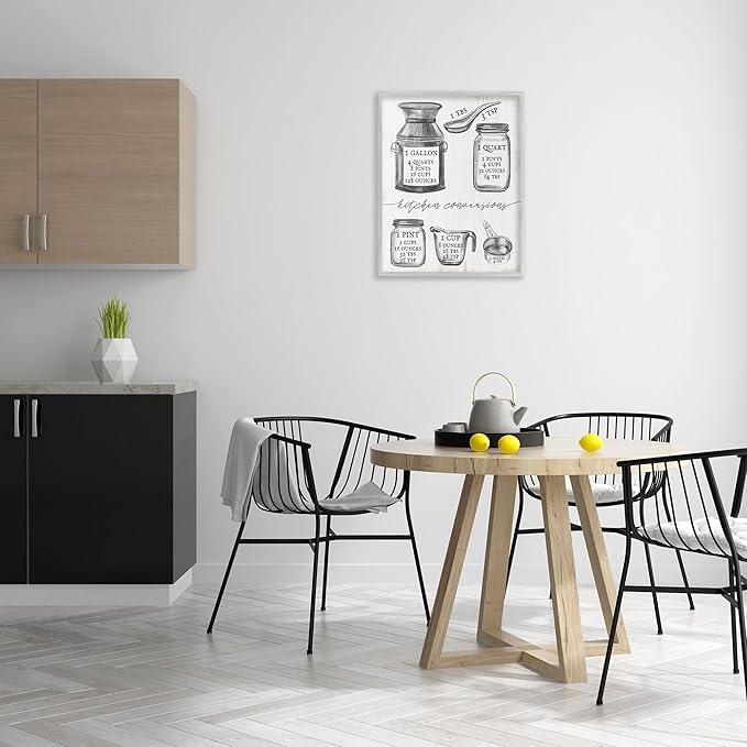 Stupell Industries Kitchen Conversion Chart Neutral Grey Word Drawing, Design by Artist Daphne Polselli Wall Art, 24x30, Off- White