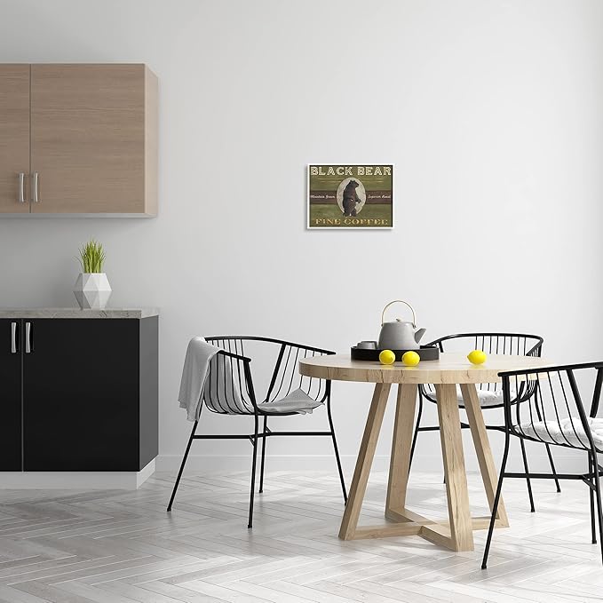 Stupell Industries Black Bear Fine Coffee Rustic Kitchen Mountain Animal, Designed by June Erica Vess White Framed Wall Art, 11 x 14, Green