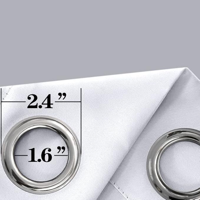 - EASY CARE & PACKAGE : Curtain Set includes 1 pair - 2 pack blackout curtain panels of 42" wide by 72" drop with 6 silver grommets top. Thick curtains without liner yet feels heavy enough and soft.Wrinkle free.The eyelet ring (1.6-inch inner diameter) fits easily with standard curtain rods.Machine washable in gentle cycle and cold water.Do not bleach.Warm iron and tumble dry low.Return within 30 days if not fully satisfied.