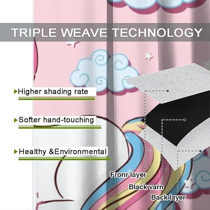 Unicorn Curtain for Kids Bathroom,Pink Cartoon Bathroom Curtains Decor Noise Reducing Curtain for Home Bedroom Party Wall Decorations 52x84inch(132x213cm)