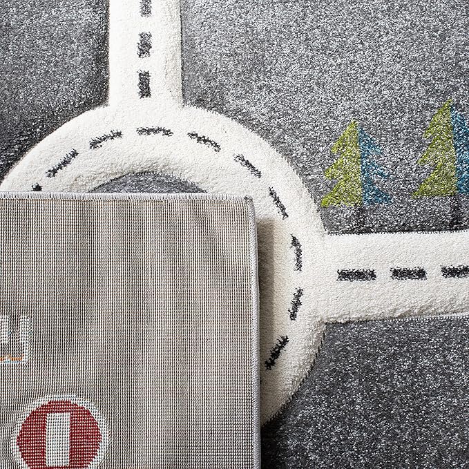 SAFAVIEH Carousel Kids Collection 6'7" Square Grey/Ivory CRK192F Neighborhood Road Non-Shedding Playroom Nursery Bedroom Area Rug