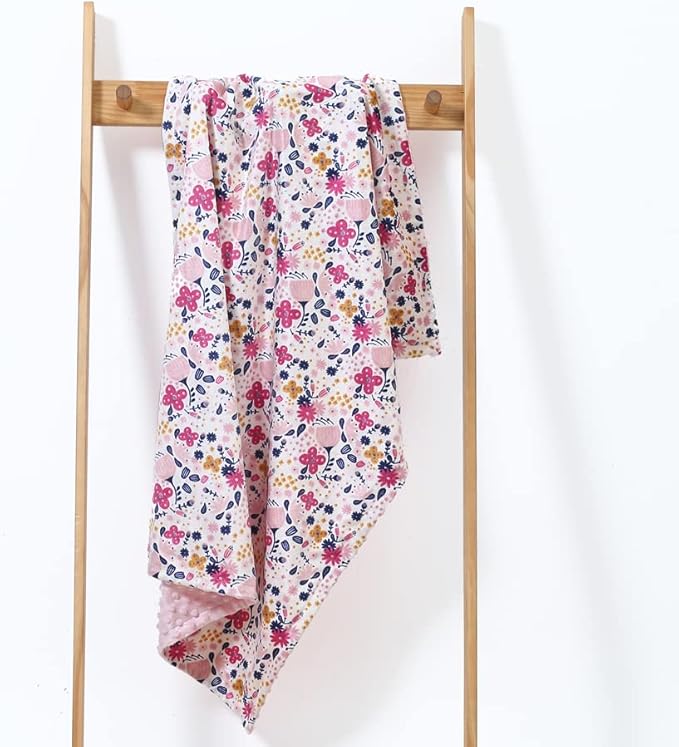 CREVENT Minky Floral Baby Blanket for Girls, Soft Plush Receiving Crib Blanket for Newborns Toddlers Bedding - Flowers 30x40 Inches