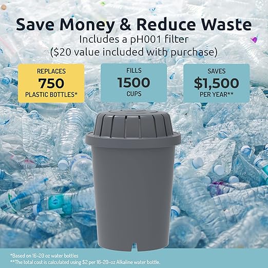 - ECO-FRIENDLY SOLUTION - Our alkaline water filter system significantly reduces your plastic bottled water usage, thereby saving you money & aiding the planet! These water purifier pitchers are also constructed from high-grade BPA-free, food-safe materials
