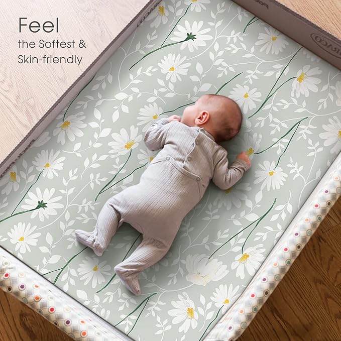 - Apple It Within Seconds: Thanks to the elastic bottom, our pack n play sheets come in a classic, watercolor daisy flowers print that will put the finishing touches to any bedding. Make sure to give your darling a serene and calm bed to rest in.