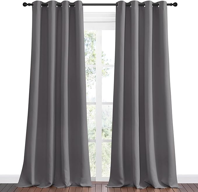 NICETOWN Bedroom Blackout Curtains Panels - Triple Weave Energy Saving Thermal Insulated Solid Grommet Blackout Draperies for Patio (1 Pair, 55 inches by 90 Inch, Grey)