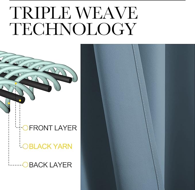 - ENERGY SMART: Triple weave blackout fabric balances room temperature by insulating against summer heat and winter chill. Protect your furniture, floors, and artwork from the ravages of the sun, the drapes will pay for themselves off over time.