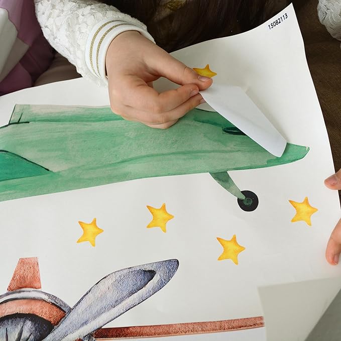 - 🍀 Waterproof material made of eco-friendly PVC (vinyl) with latex water based ink, non-toxic, watercolor airplane wall decals safe to use in kids' rooms.
