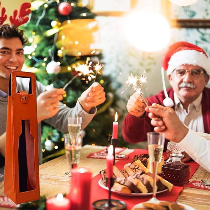 • ✅【Size】: 7.6*3.7*12.8 inch, accommodate 1 regular 750ml wine bottles.Our leather wine tote is great for one wine bottle. Designed with a metal buckle on the top of the bag, it will enhance the security of wine bottle from crashing.