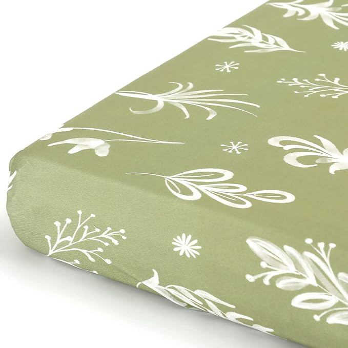 - Apple It Within Seconds: Thanks to the elastic bottom, our pack n play sheets come in a classic, stylish watercolor flora and olive pattern that will put the finishing touches to any bedding. Make sure to give your darling a serene and calm bed to rest in.