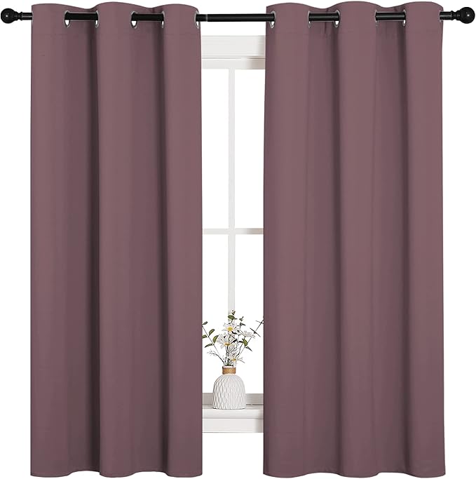 NICETOWN Dry Rose Blackout Curtains for Bedroom (1 Pair, 42 x 63 inches), Farmhouse Thermal Insulated Room Darkening Drapes for Windows