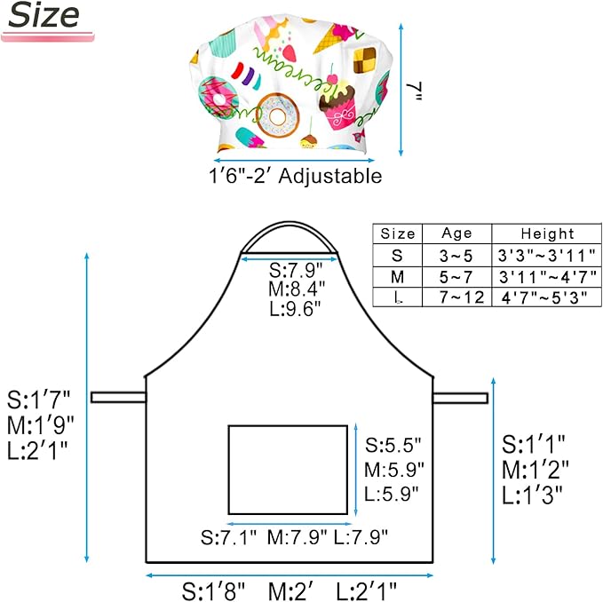 Kids Apron Chef Hat Set for Boys and Girls Adjustable Neck Strap Hook and Loop Fastener Design Waistband for Baking