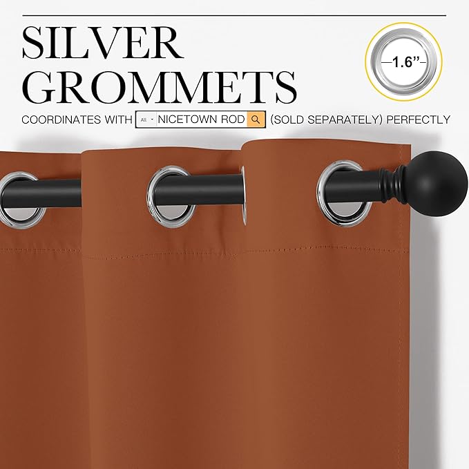 NICETOWN Bedroom Halloween Curtains 50 inches Long, Privacy and Thermal Insulated Blackout Drapes for Windows (Burnt Orange, 1 Pair, 42 x 50 inches)