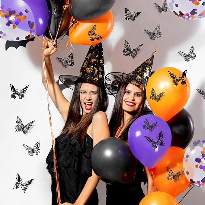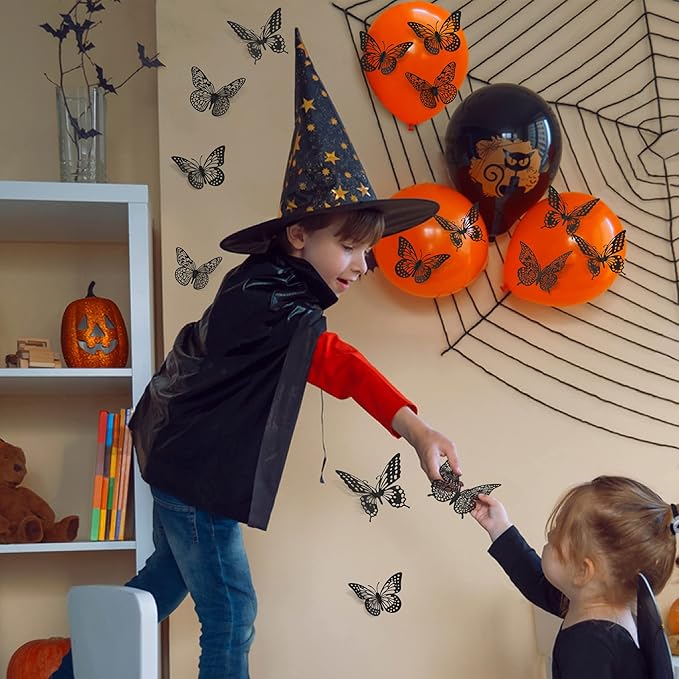 SAOROPEB 3D Butterfly Wall Decor 48 Pcs 4 Styles 3 Sizes-Butterfly Birthday Decorations&Butterfly Party Decorations&Butterfly Cake Decorations-Removable Gold Butterfly Decorations (Black)