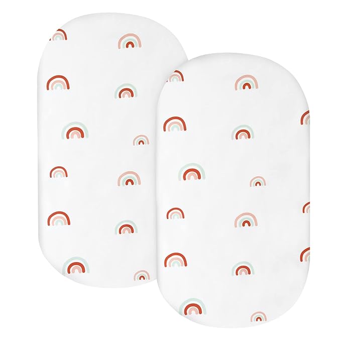 Bassinet Sheets for Baby Girl Boy 2 Pack Bassinet Sheet Fitted Boho Cradle Sheets for Oval Rectangle and Hourglass Bassinet Mattress, Rainbow