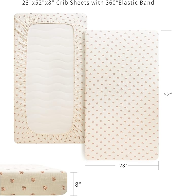 Konssy Muslin Fitted Crib Sheets 100% Cotton Baby Crib Sheets for Standard Crib Mattress (28 X 52 Inches), Soft and Breathable for Boy, Girl (Rainbow)