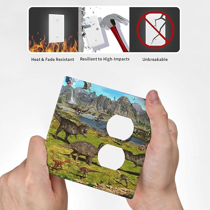 Cute Dinosaur Combo Single Blank 1 Duplex Outlet Switch Wall Plate Cover Decorative 2-Gang for Electrical Boys Kids Room Bathroom Bedroom Home Kitchen One Receptacle 4.5" x 4.6"