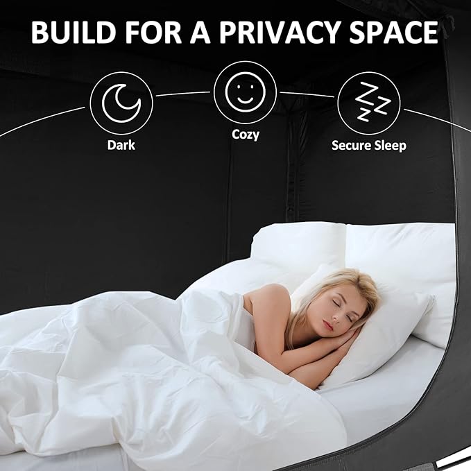 - RELAXING PRIVATE SPACE: This full bed tent measures 75 x 54 x 47inches and fits double beds. It creates a private space in dorms, shared rooms, offices and more, which means you can have more relaxation time. The bed tent also provides you with a better night's sleep at bedtime and during naps. Bed tents allow you to see out, but no one can see in. You can adjust the panel as needed to control the light and create a cozy environment.