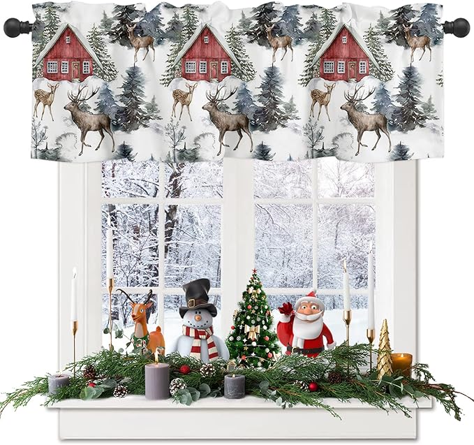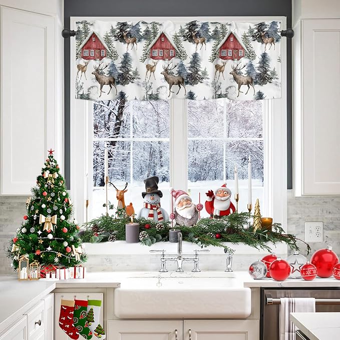 - Wide Use Christmas Seasonal Curtain Valances: Can Be Used As Kitchen Valance,Door Valances, Cafe Curtains,Valance Curtains for Living Room /Bedroom/Nursery Room /Bathroom Windows Decor During Christmas Season.