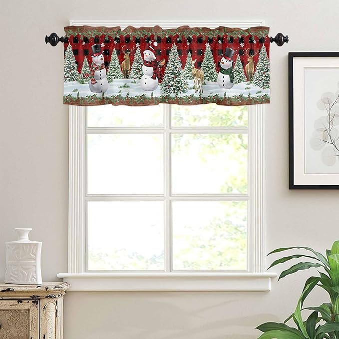 - Wide Use Christmas Seasonal Curtain Valances: Can Be Used As Kitchen Valance,Door Valances, Cafe Curtains,Valance Curtains for Living Room /Bedroom/Nursery Room /Bathroom Windows Decor During Christmas Season.