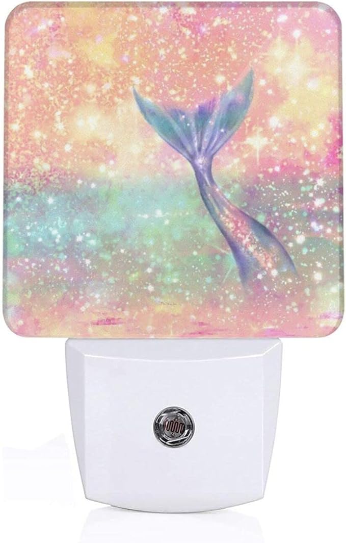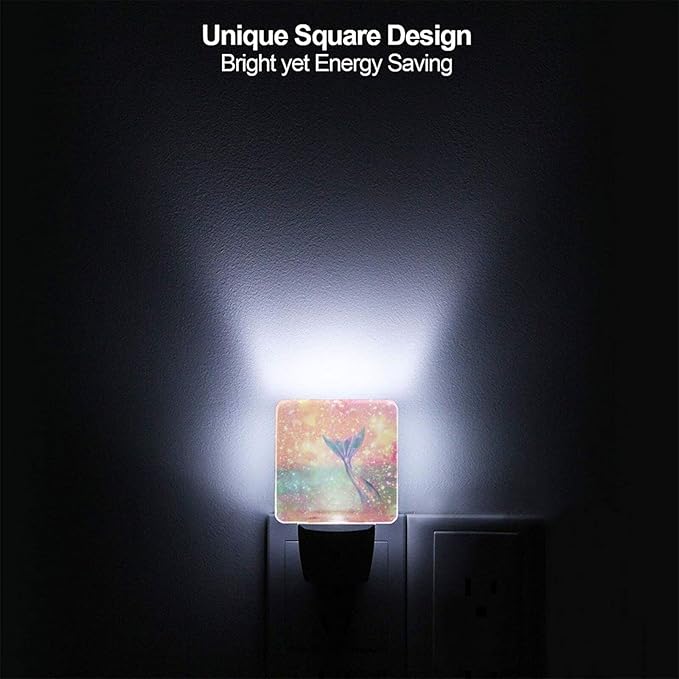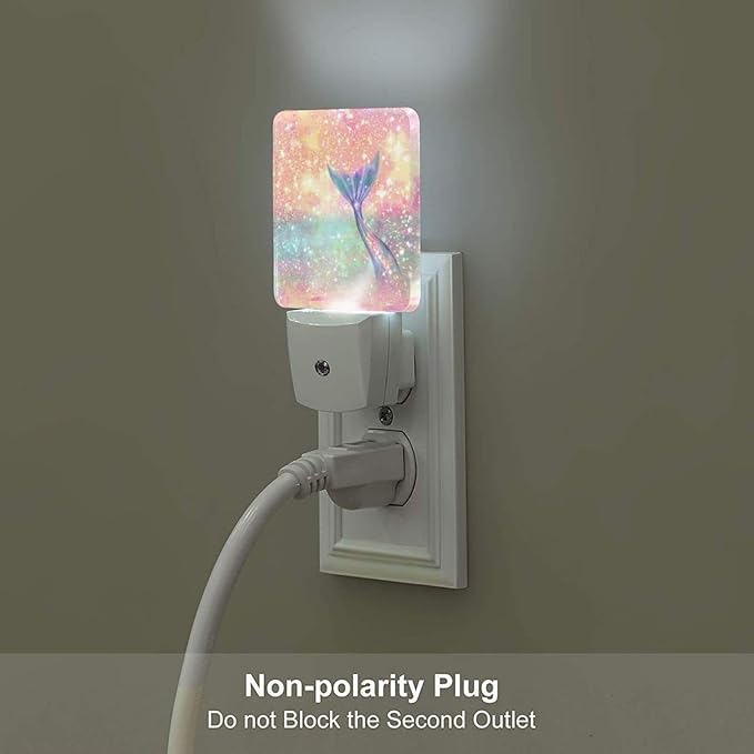 Pink Mermaid Night Light for Kids Girls Plug into Wall Led Nightlight with Dusk to Dawn Sensor Compact Lamp Bedroom Bathroom Nursery Hallway Stairs Kitchen Home Decor