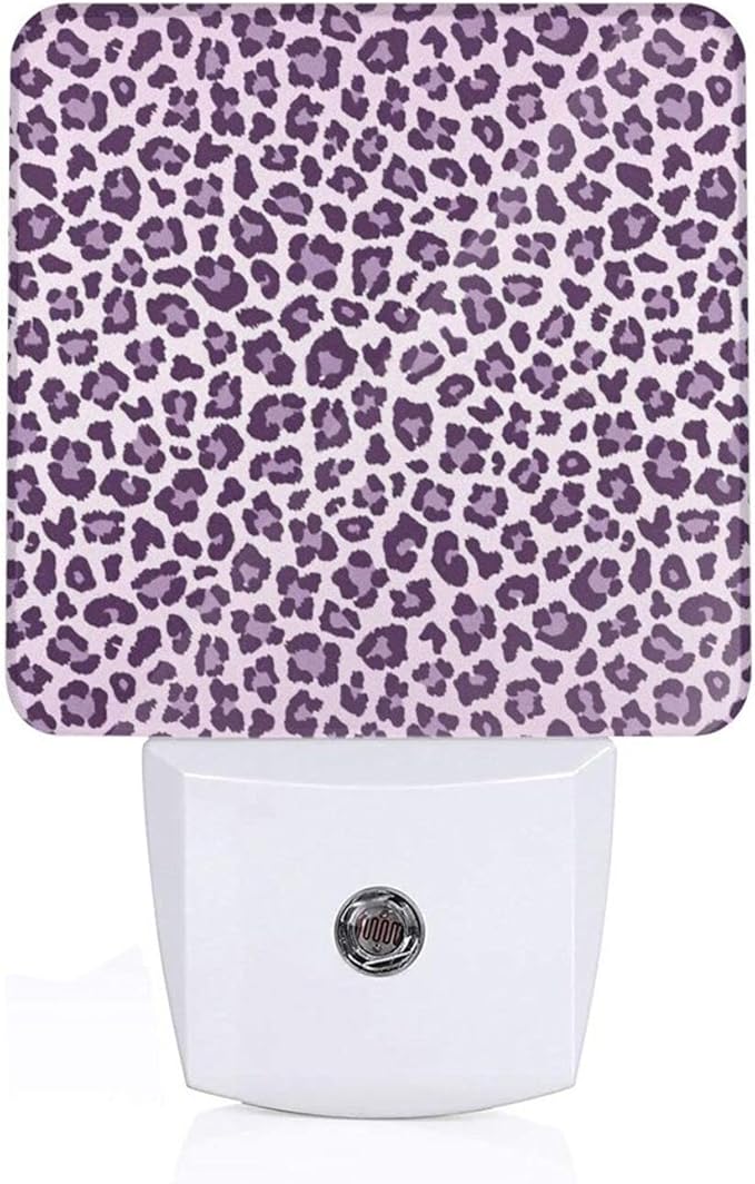 Purple Leopard Print Night Light for Kids Girls Plug into Wall Led Nightlight with Dusk to Dawn Sensor Compact Lamp Bedroom Bathroom Nursery Hallway Stairs Kitchen Home Decor