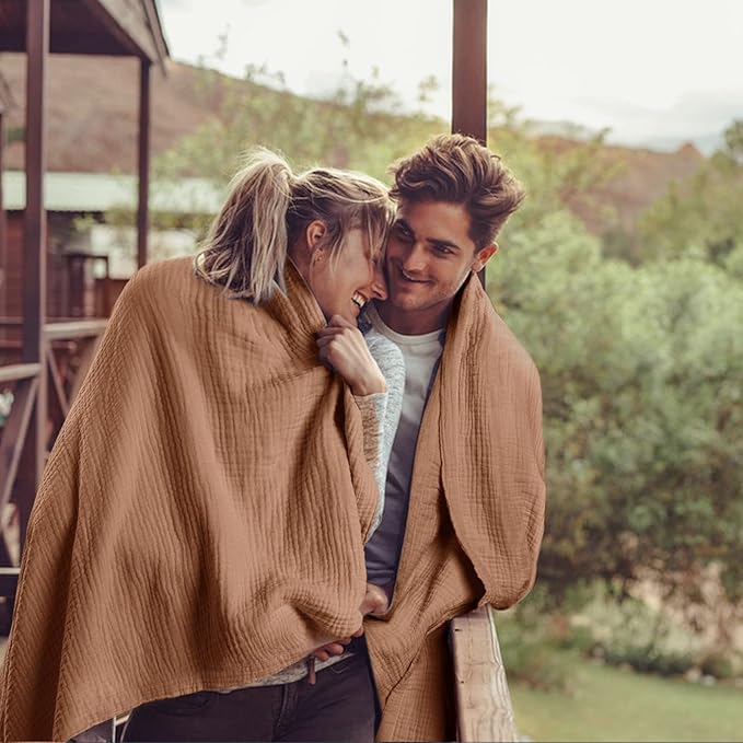 Lulu moon Muslin Blankets for Adults 55”x75” - Couch Throw Blanket for Boys - Light Weighted Muslin Quilt for Sofa and Bed (Caramel)