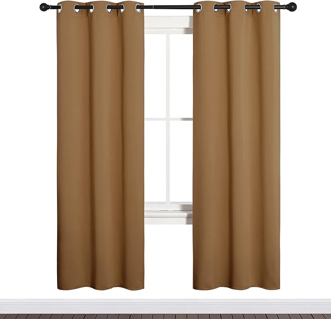 NICETOWN Sleek Blackout Curtains 72 inches Length for Windows, Noise Reducing and Block Draft Panels for Door Doorway Laundry Office Luxury Decor Theme (2 Panels, Gold Brown, W34 x L72 -Inch)