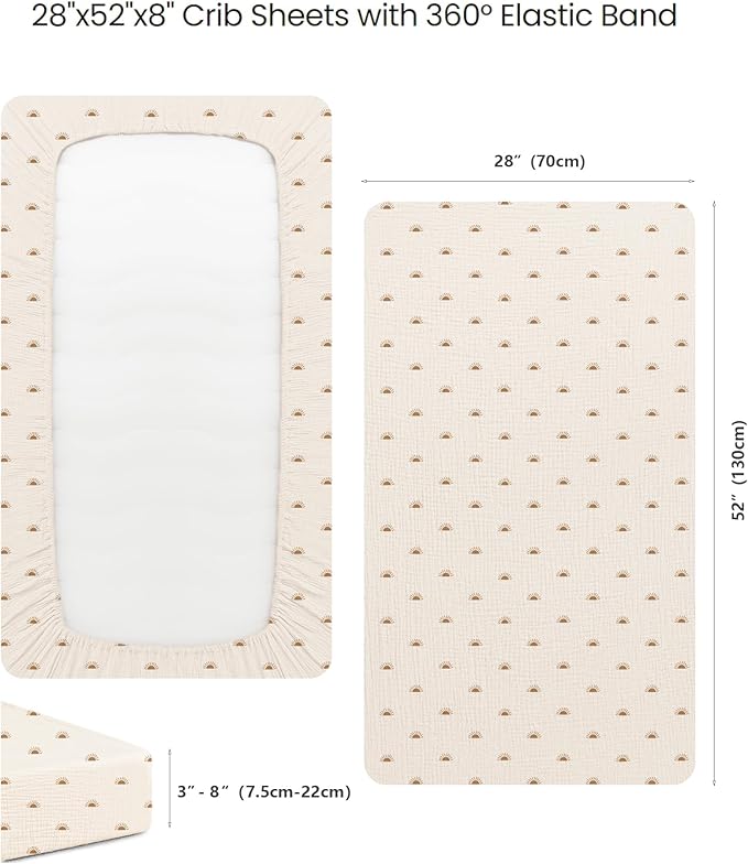 Konssy Muslin Fitted Crib Sheets 100% Cotton Baby Crib Sheets for Standard Crib Mattress (28 X 52 Inches), Soft and Breathable for Boys, Girl (Sun)