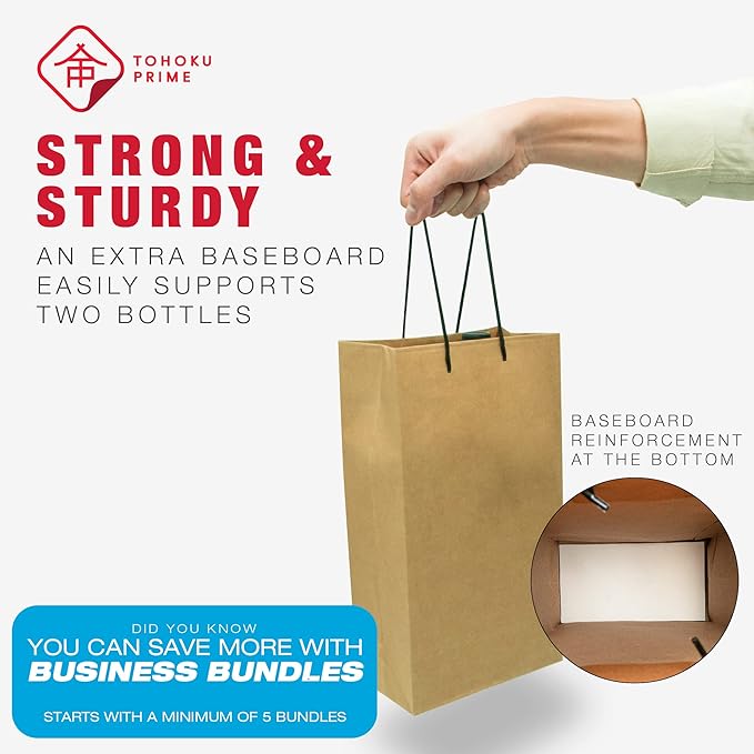 - 💪 HEAVY DUTY: 7.15"x4"x13" made with 160gsm Tohoku Japanese Kraft and a reinforced baseboard that can handle up to 10lbs. Each bulk pack includes 60 counts of wine paper bags